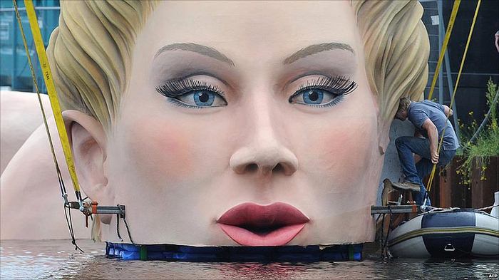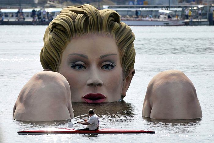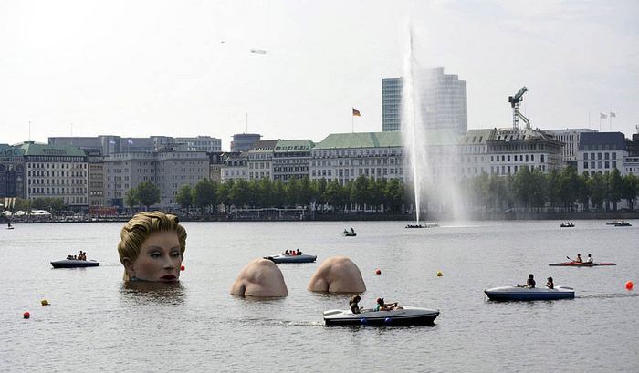 Hamburg'da göl içinde dev kadın heykeli.