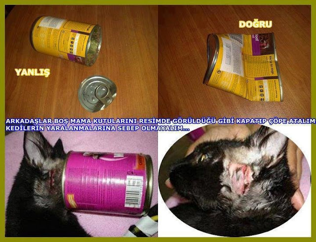 Arkadaşlar boş mama kutularını resimde görüldüğü gibi kapatıp çöpe atalım, minik dostlarımızın yaralanmasını istemeyiz.